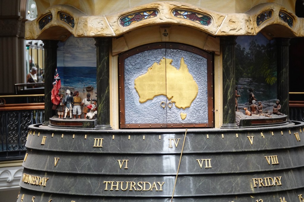 Unfortunately, this mechanical clock (made right here in Sydney) was not working, although we could see by the exposed mechanisms and bells that there would be a lot going on if it was.