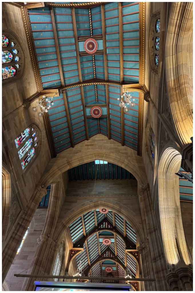 Like St. Mary’s, the Catholic Cathedral, the architecture is Gothic Revival. Even though that came out of the English colonists’ desire to make the city look like the great English cities, I’ve said to Ted several times during our stay here that Sydney feels (to me)much more like continental Europe than like anywhere in the UK.