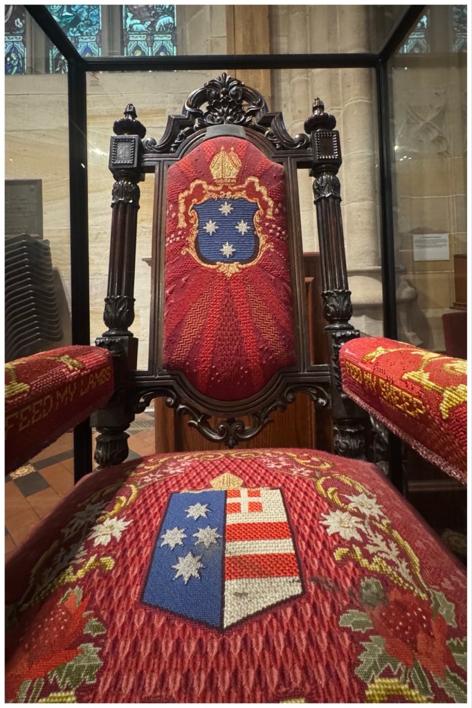 There are several historically significant items displayed in the cathedral, two of which are the tomb and chair of Australia’s first Bishop (prior to States having their own, and before Catholic bishops were assigned to the country)