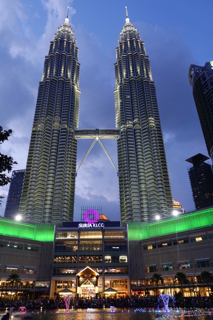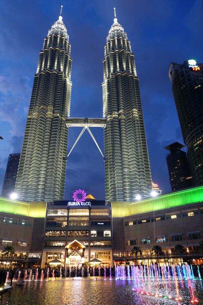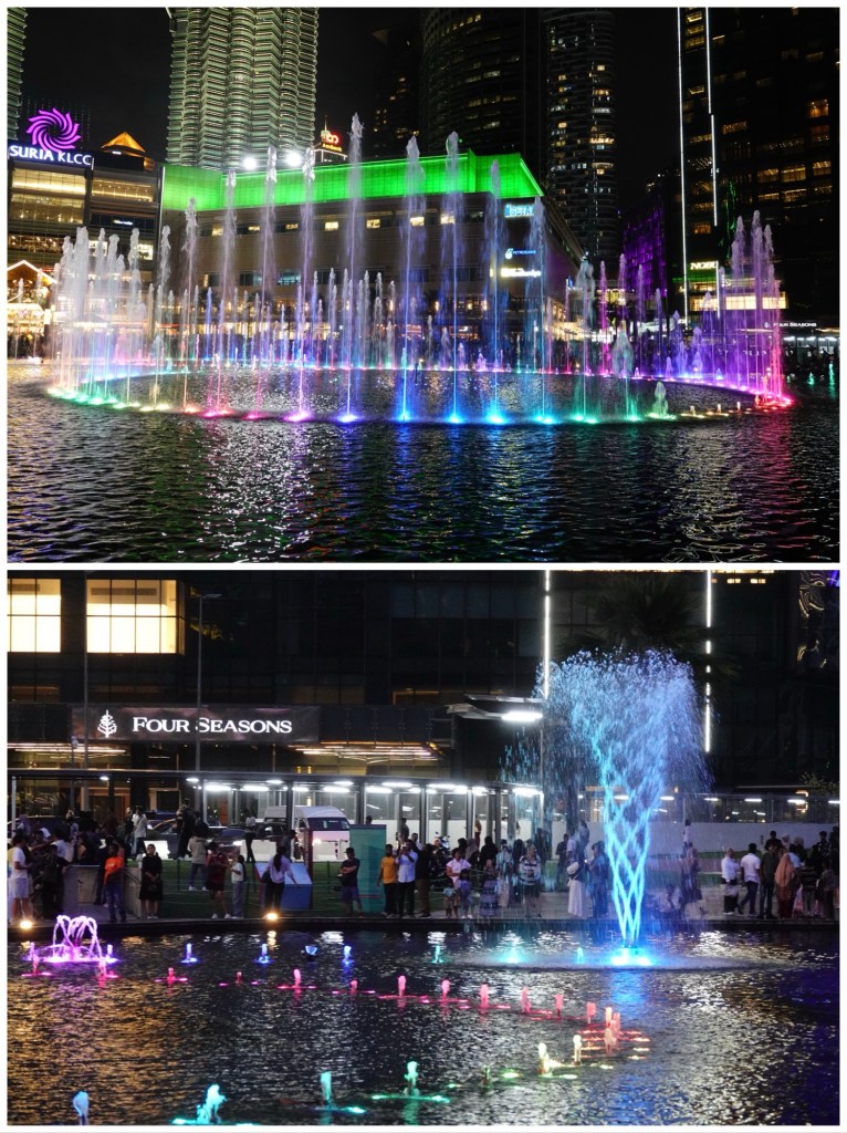 On our second evening, we walked to the much less crowded KLCC Park, where families and tourists find seats on the steps surrounding Symphony Lake to watch the Petronas Towers turn to glowing silver as the sun sets, and then enjoy the nightly water and light show on Symphony Lake.