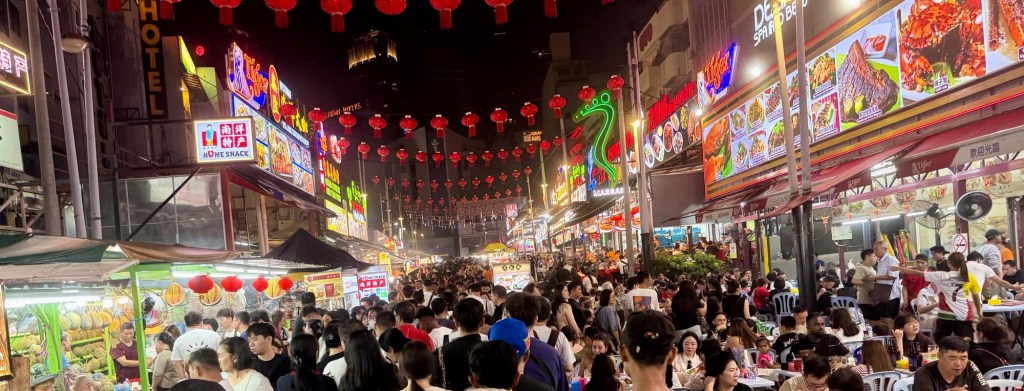 People who don’t have to be outside during the day either stay home or retreat to the air-conditioned malls, but when the sun sets – even though the humidity still makes every piece of clothing stick – the city’s skyscrapers light up, the neon signs glow, lanterns shine across streets, and the crowds emerge.