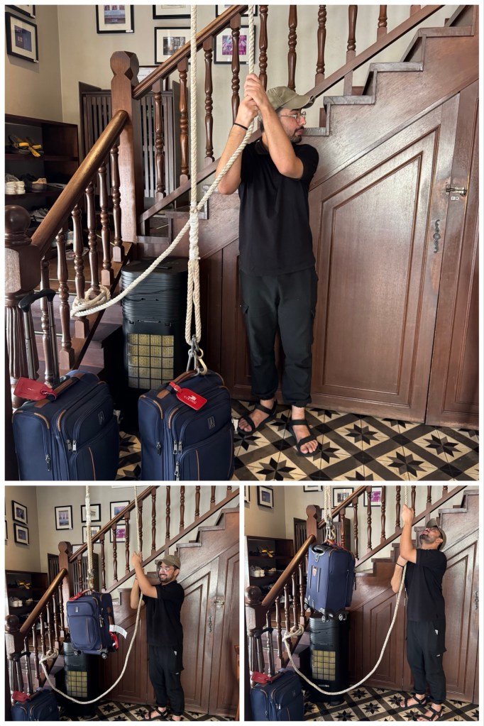 This heritage building has no elevators and a long and winding polished wooden staircase, so luggage was taken to our top floor room in a very unique way.