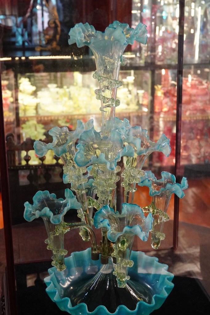 On one side landing was a room filled with antique glassware.