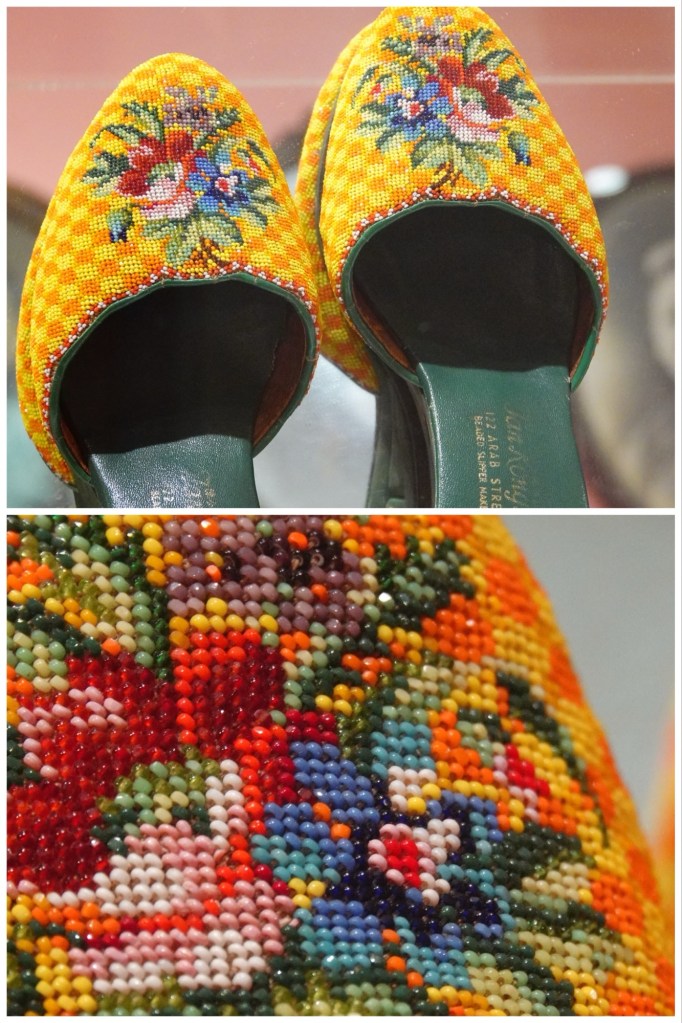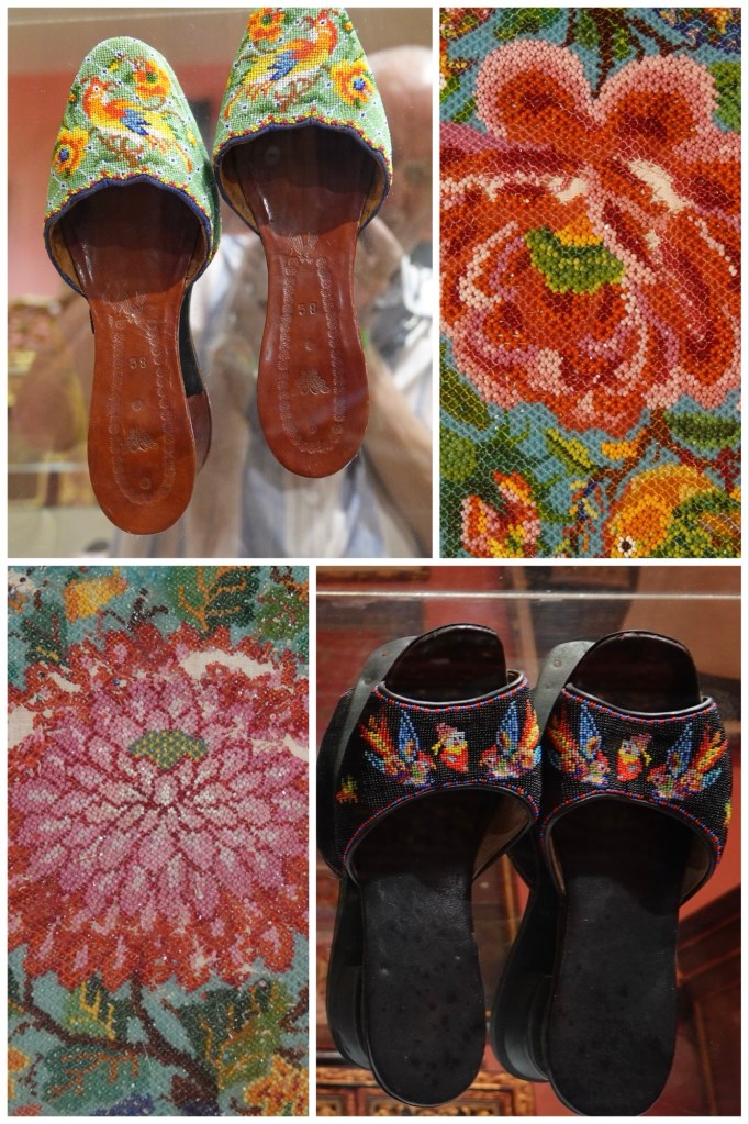 We were shown an extensive display of antique beaded slippers. The beads are glass, imported from France, and seem impossible tiny.