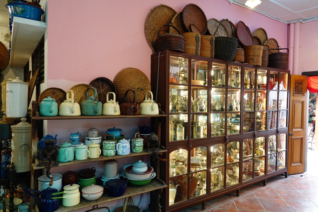 What was the kitchen now houses a display of antique cookware, china, and Royal Selangor pewter (which I didn’t realize was a Malaysian company, founded in 1885).