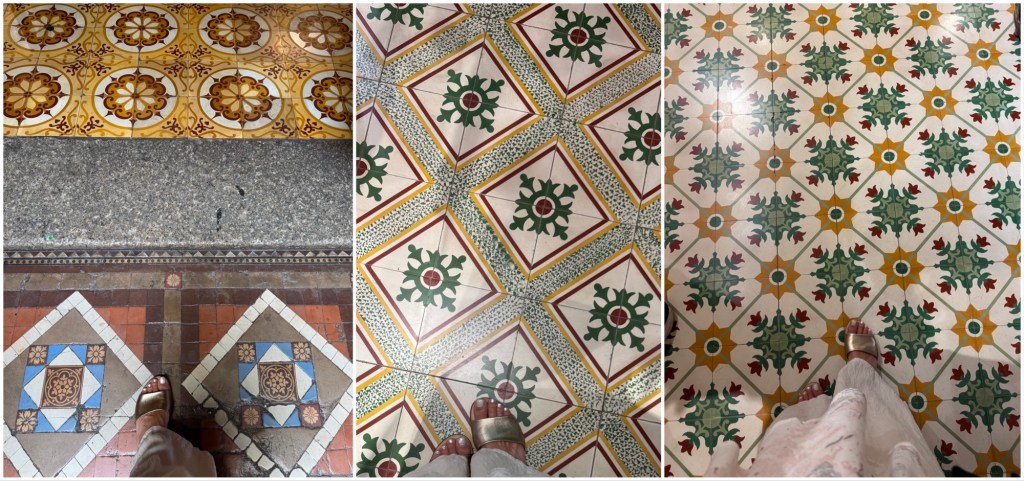 I’m always fascinated by decorative floors, so the variety and colours of the mostly original English Stoke-on-Trent ceramic floor tiles were really interesting.