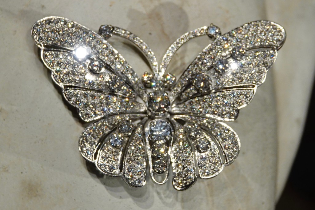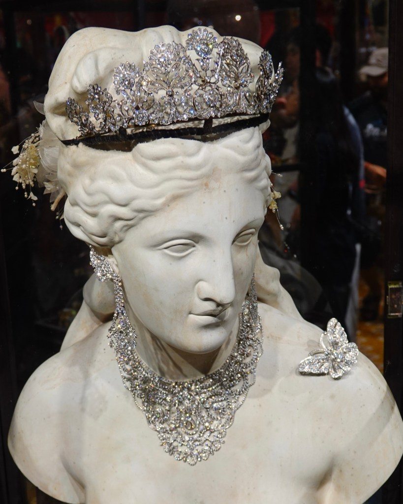 We weren’t told the value of the diamond butterfly brooch, but we were shown the museum’s truly priceless pieces (below). There is, as far as we know, not another set of this quality in the world, and it would be impossible to duplicate.