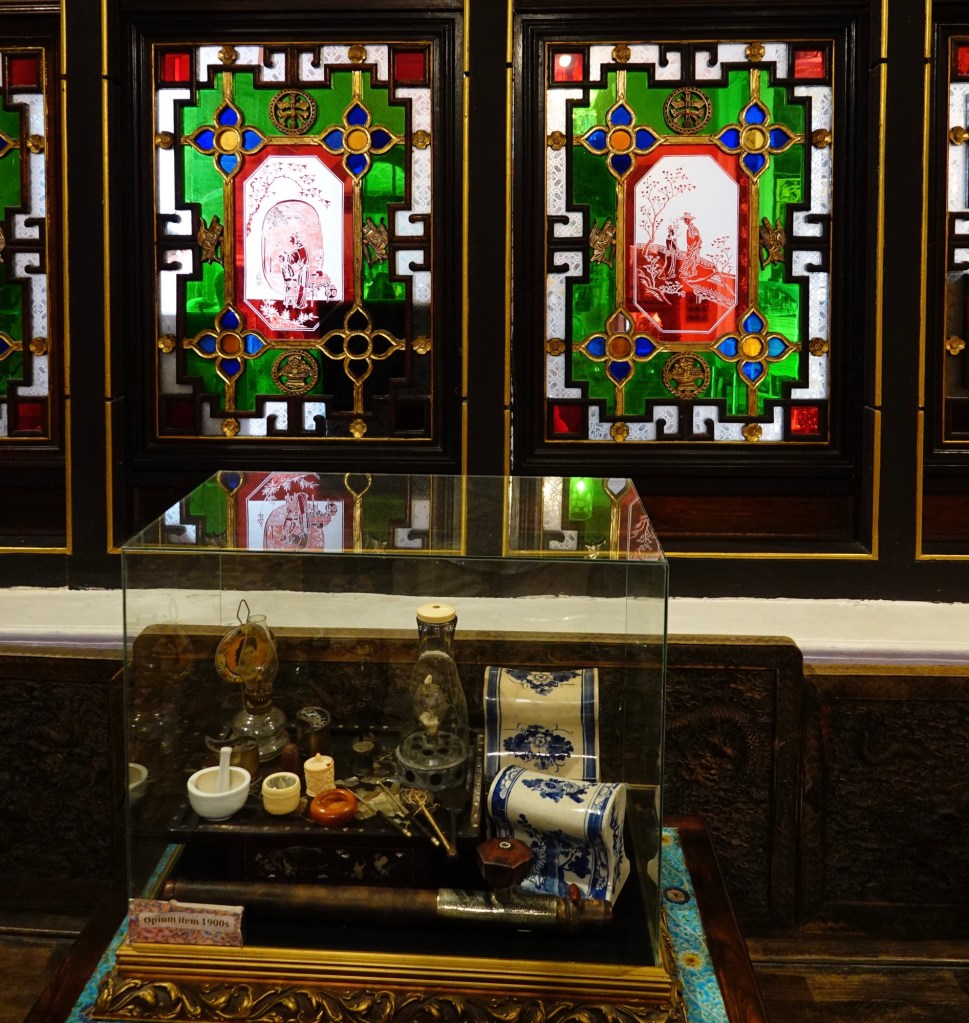 The men’s area was a smoking room, complete with opium beds and displays of opium paraphernalia. Originally used just as a painkiller, it became, for a while, fashionable.