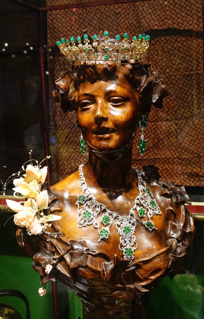 After the play, we had almost an hour before the museum’s closing time to wander around. Stanley advised us not to miss the mansion’s upstairs rooms, but we also wanted a second look at the spectacular jewellery collection. Fortunately, we were able to do both.