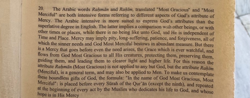 The note 20 beside the words Most Merciful is explained on the bottom half of the page.
