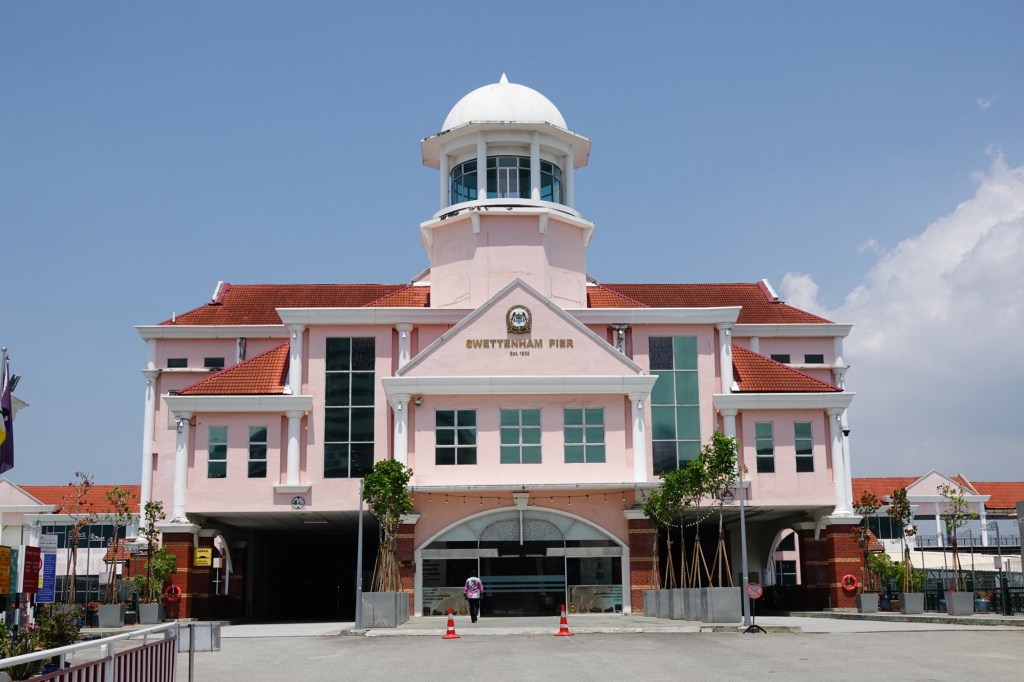 From the mosque we took a circuitous route to Swettenham Pier, passing a much smaller mosque, several Chinese clan temples, several more Hindu temples, lots of street art, and colonial era buildings, stopping at one point in a food market for iced soy bean milk with palm sugar and grass jelly.