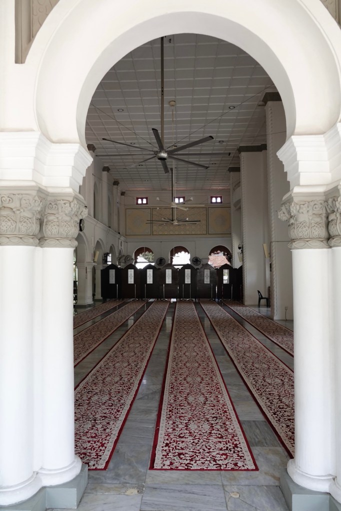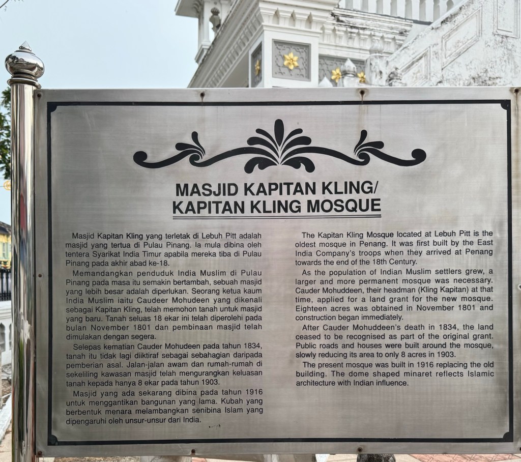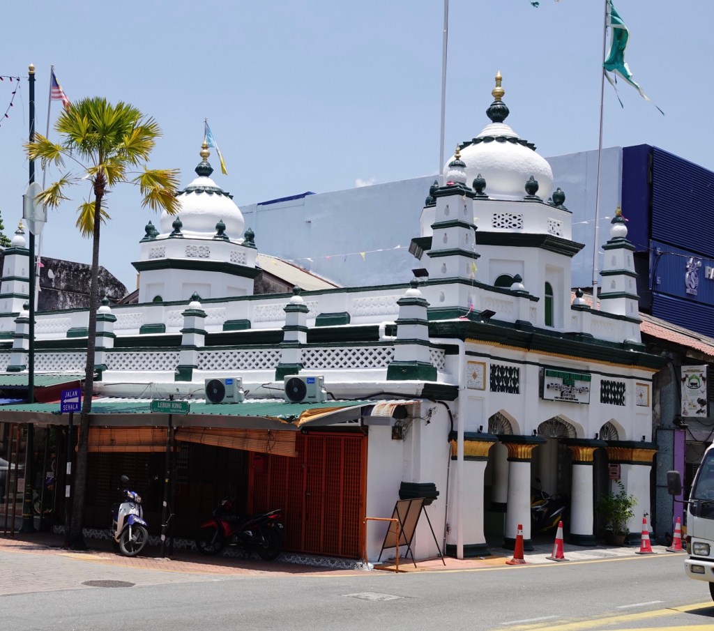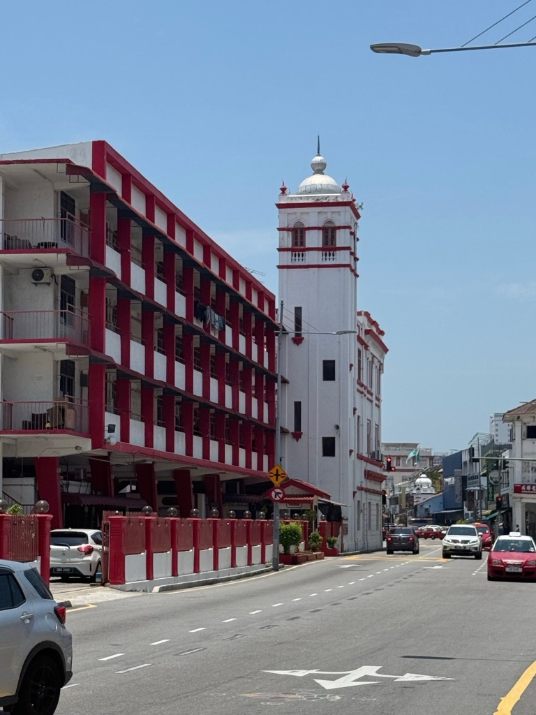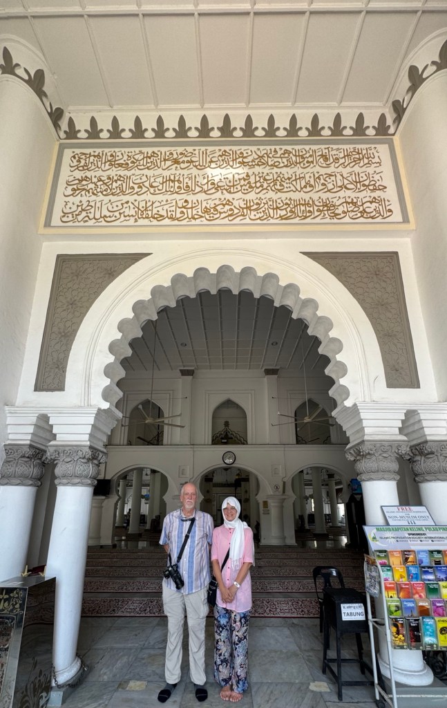 We still wanted to visit the oldest mosque in Penang, which is open to “respectfully dressed” non-Muslims, as well as revisiting the colonial town centre close to Fort Cornwallis that we walked around last year (Episode 635), and maybe even get as far as Swettenham Pier, the pretty cruise ship terminal that we sailed into last year.