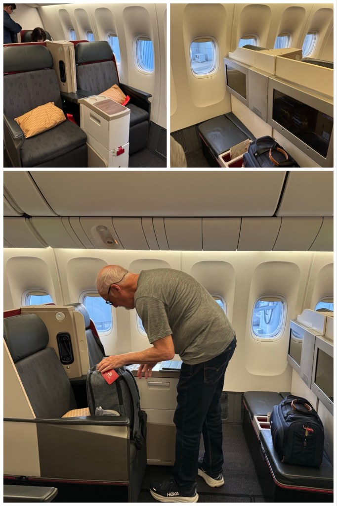 We were back on Turkish Airlines for the 90 minute flight to Athens, in a different and possibly even roomier seat, although we’d never seen a 2-3-2 business class configuration before.