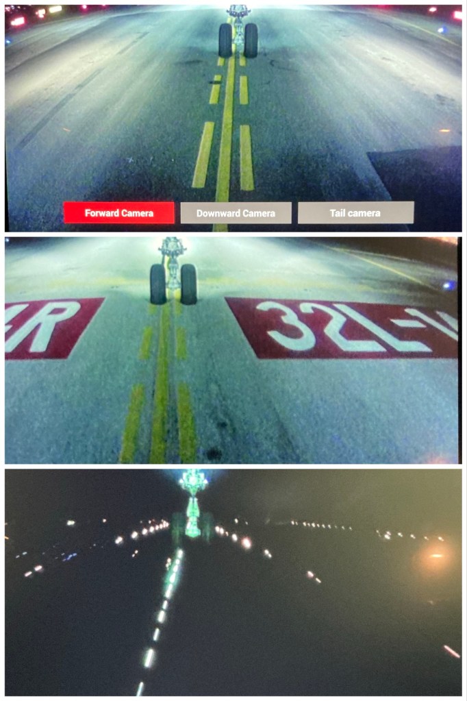 Take-off was exactly on time at 23:45 (11:45 p.m.), and we could watch the progress of our plane along the runway by accessing the forward, downward, and tail cameras right on our seatback entertainment systems!