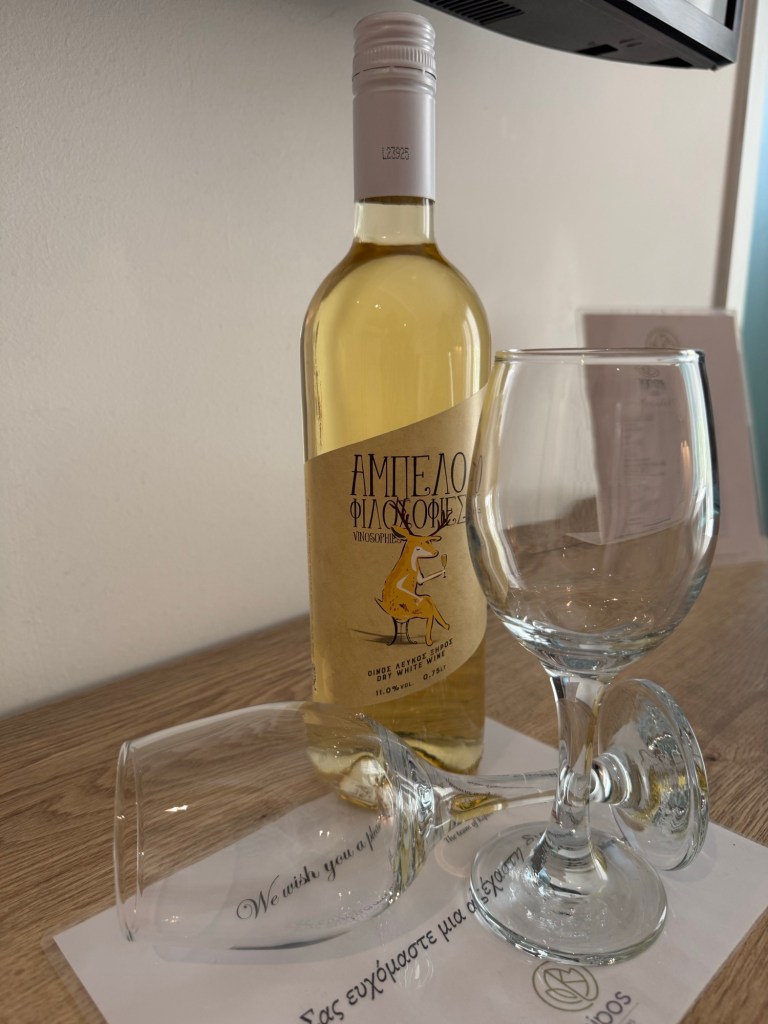 It’s not fancy, but it’s in a great location in the old city (to be fair, everything in Heraklion is old), has most of what we need for a comfortable stay (no washer), and came with a bottle of Greek white wine as a welcome.