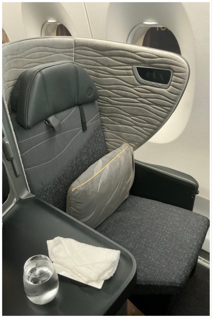 We also had to re-clear security, but made it to our gate on time. Funnily enough, we were the only two business class passengers on the plane, which meant we were the only people who got a snack during the 50 minute flight. I would never book business class on a short commuter flight, but since this was part of our overall round-the-world ticket, it defaulted to that class.
