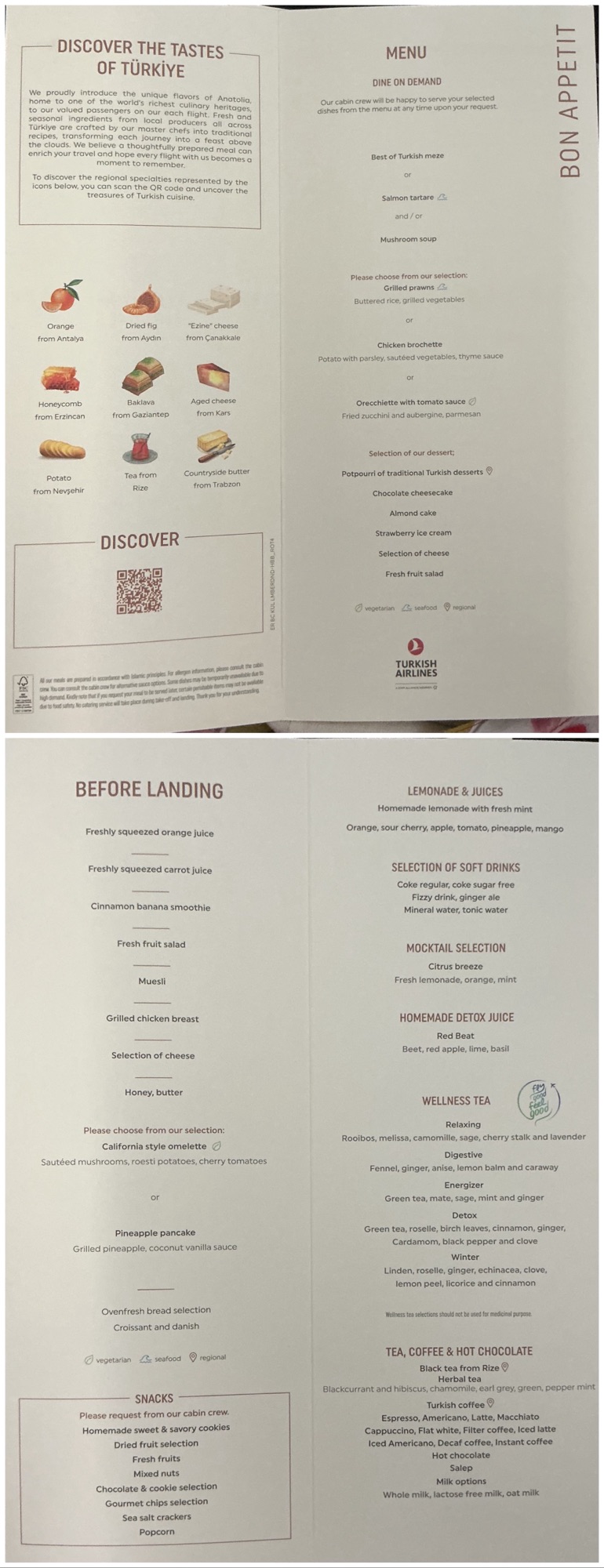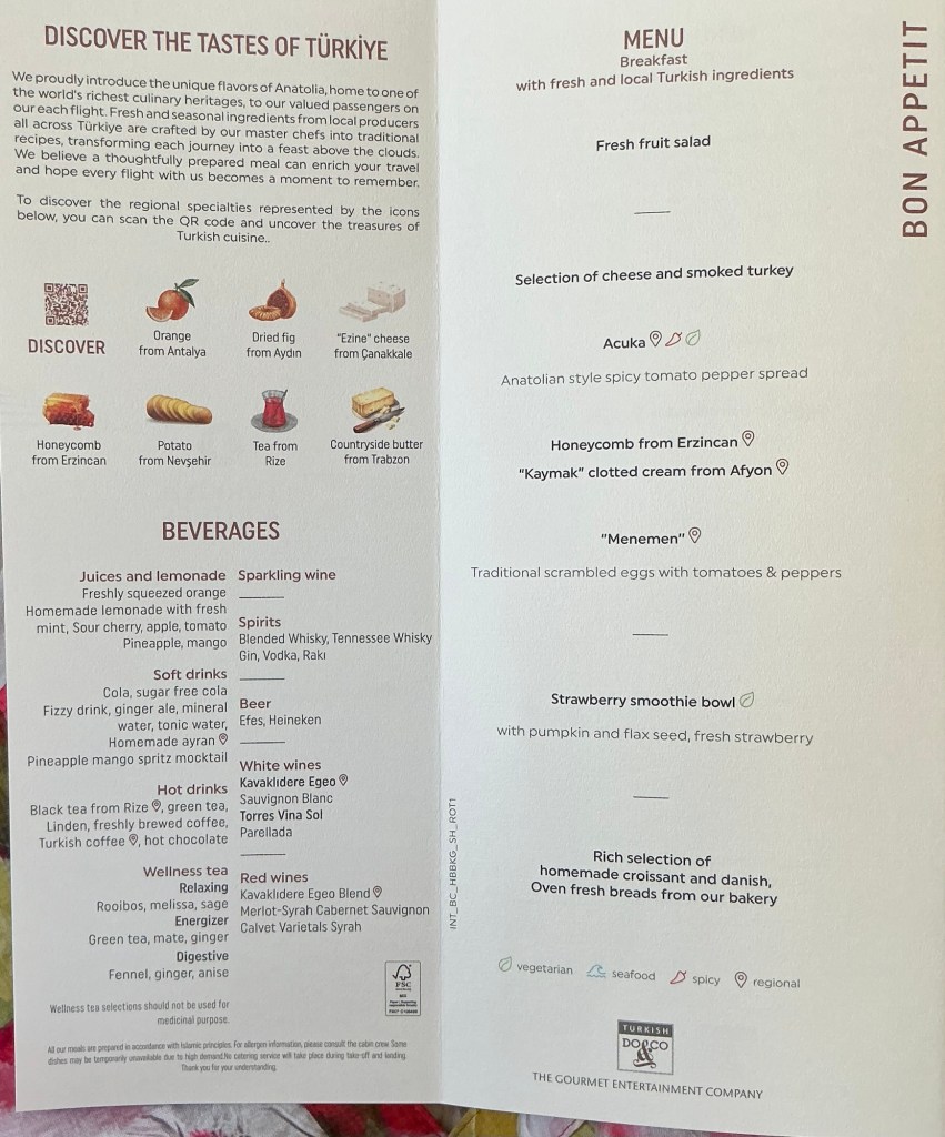 Then we were presented with the breakfast menu. Based on today’s flights, I’d say that Turkish Airlines really does food well within their Business Class offerings.