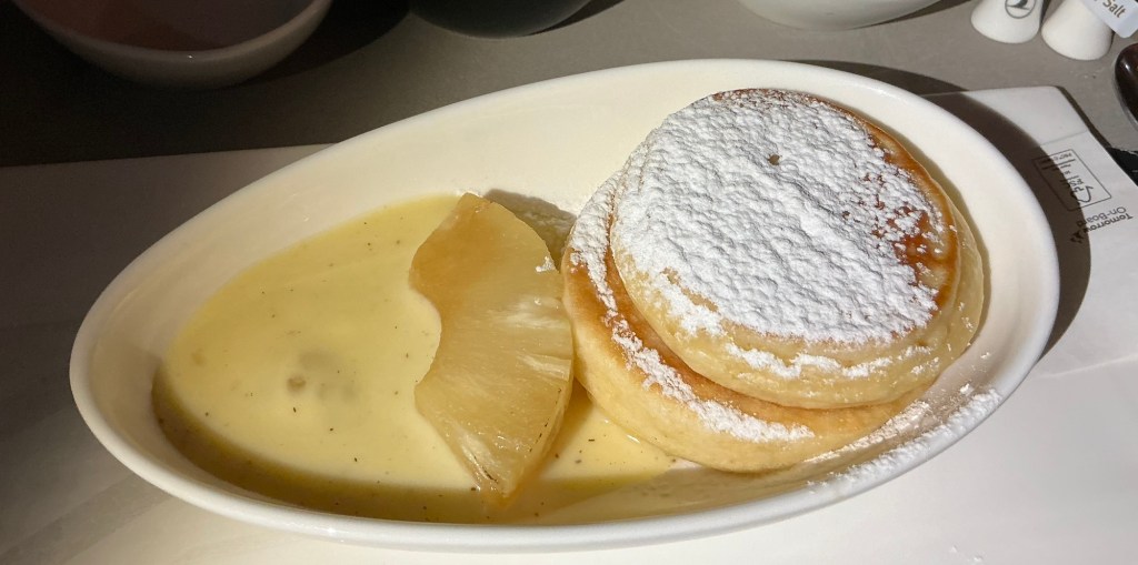 When it was time for breakfast, we were both inspired to try the pineapple pancake, but first there was an appetizer course!