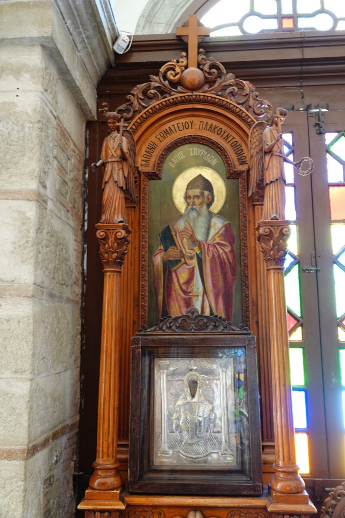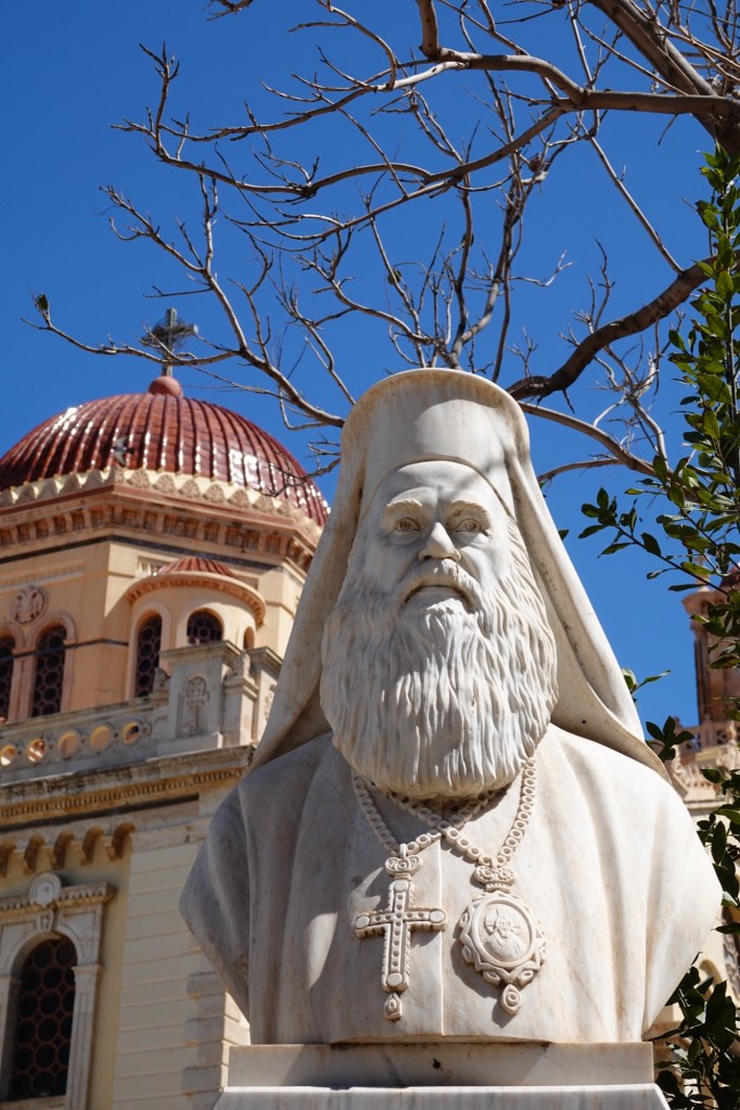 Our first two walks were based simply on the desire to pick up groceries. The AB Vasilopoulos grocery chain had a good selection at what we thought were very good prices, until on our second walk we stopped in at Bazaar and Lidl. Those have not only a good selection but truly excellent prices. As so often happens when we’re in Europe, we were shocked by just how inexpensive a decent bottle of table wine (not plonk, but also not vintage) is: under €3.50 ($5.70CAD/$4.10USD). Bread, cheese, and chocolate are reasonable too. That’s living done right!