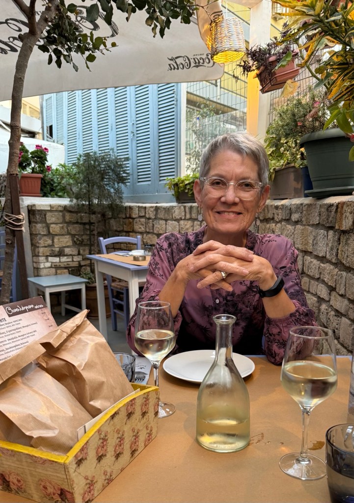 What fun! Arriving around 7:30 meant we were the first people seated; Greeks, even with young children in tow, don’t eat until 8:00 p.m. or later – and the children eat fried calamari the way North American children eat french fries!