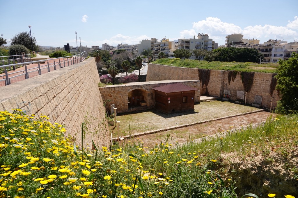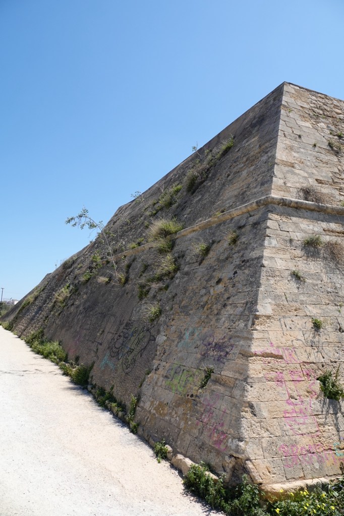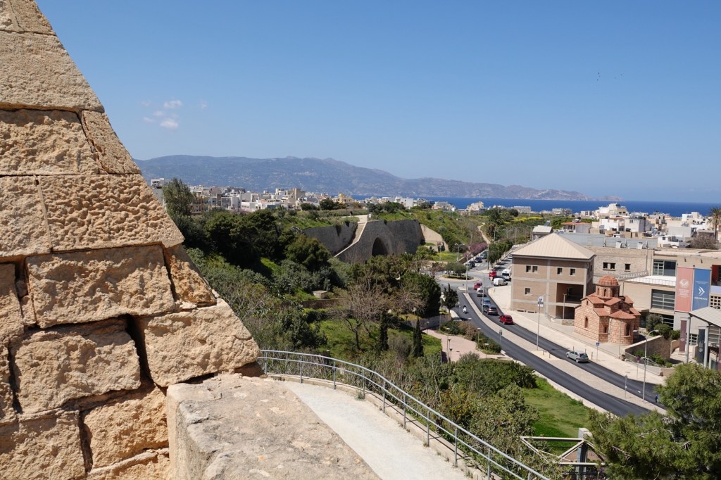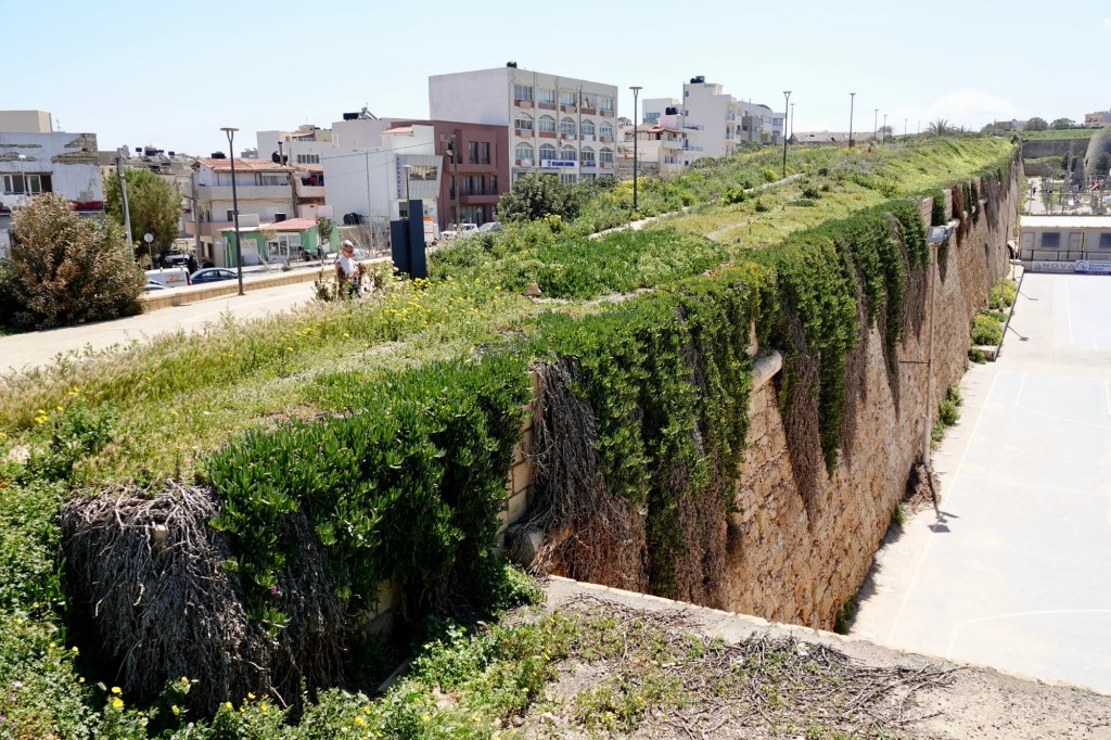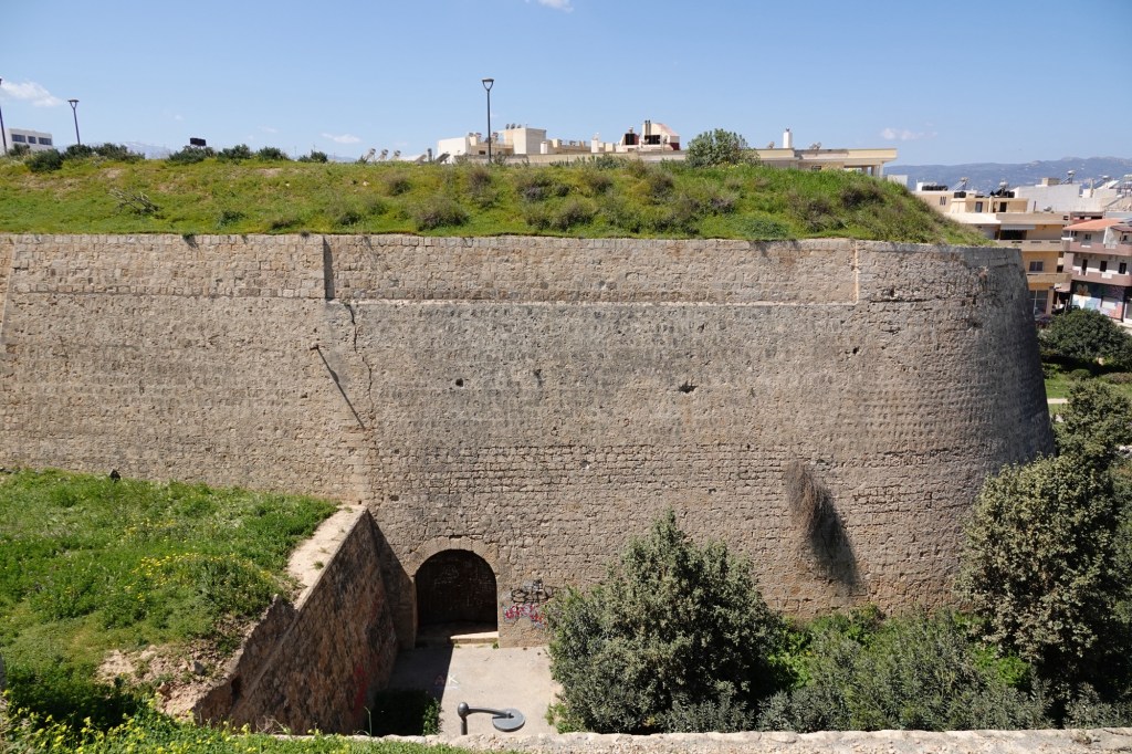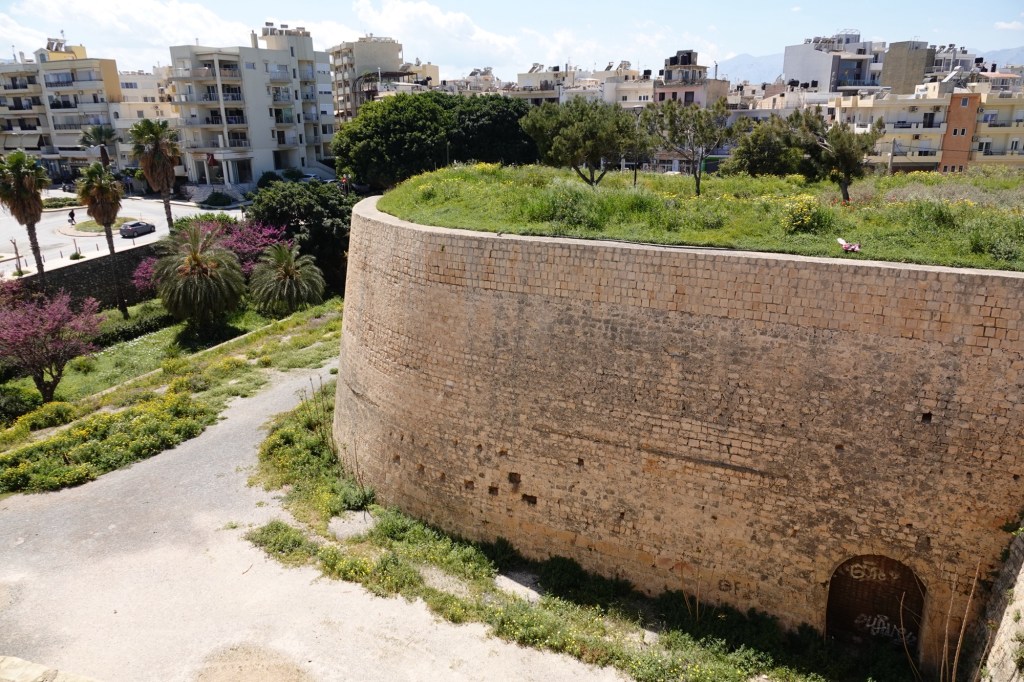 Heraklion’s series of defensive walls, originally built of unbaked bricks in the Middle Ages (late 8th century century) by the Byzantine Empire, were more recently (a relative term here in Europe) rebuilt by the Venetians between 1462 and 1562 CE, a century-long project.