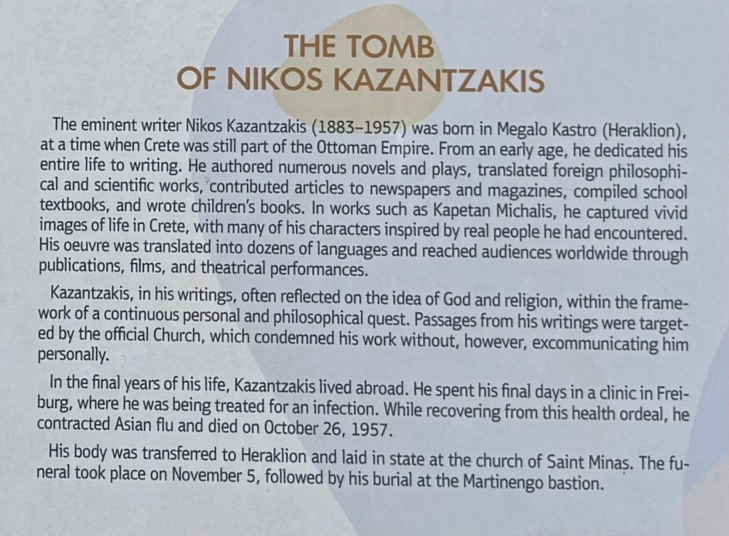 Our walk for today ended at Martinengo Bastion, site of the tomb of Nikos Kazantzakis, a famous Cretan writer. This bastion is the highest point on the Venetian walls, and ostensibly the best place for panoramic views.