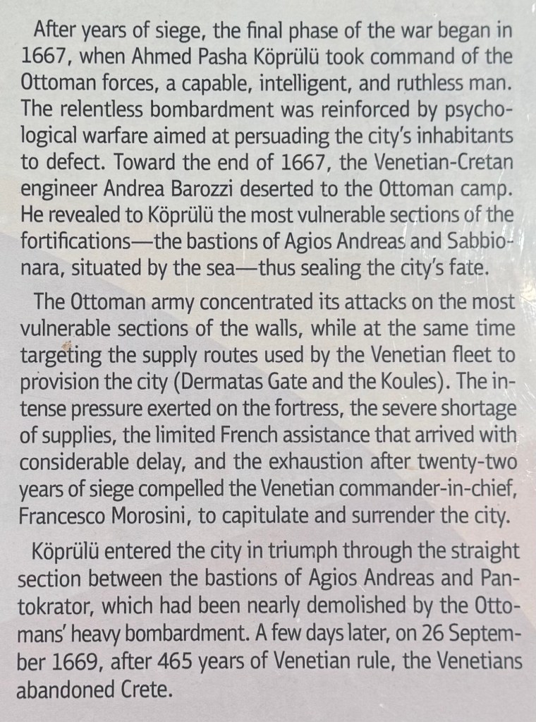 As sturdy as those bastion looks, it was apparently the weakest point in the Venetian defences when the Ottomans attacked.