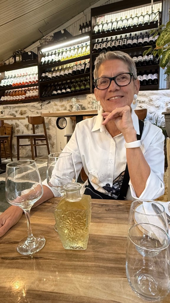 In addition to half a litre of the Greek white house wine, we had cheese-stiffed pastries, pork belly with potatoes and salad, and th3 best moussaka I’ve had in decades.