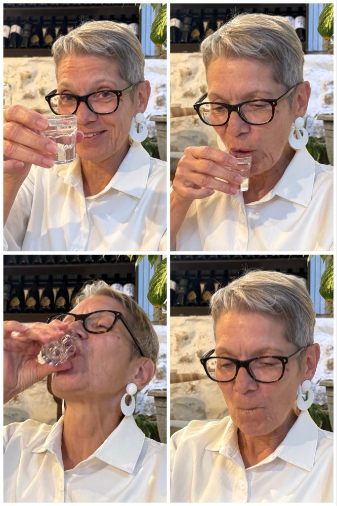 Of course there was complimentary ice-cold raki to finish. Raki is basically moonshine, and every restaurant has their own version, tonight’s was particularly strong. That last face says it all.