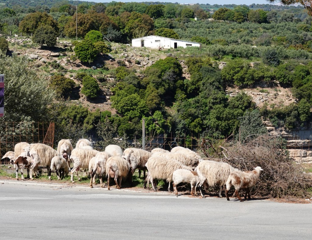 Sheep!! We learned that on Crete the sheep and goats (the former all belled) simply wander freely – no shepherding, no dogs. They simple “choose” to return home each evening for corn, and that’s when they are milked. There are no cattle on Crete. Cheeses are made from sheep or goats’ milk, and very little beef (or meat for that matter) is included in the local diet.
