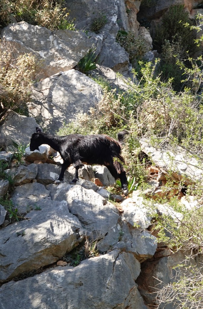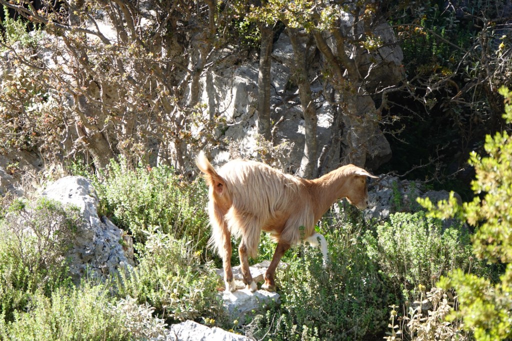 On the northwestern side of the parking lot rocky vertical slopes covered with thyme, oregano, thorny burnets, and other plants rise 50 metres up like a natural wall down which goats fearlessly scramble.