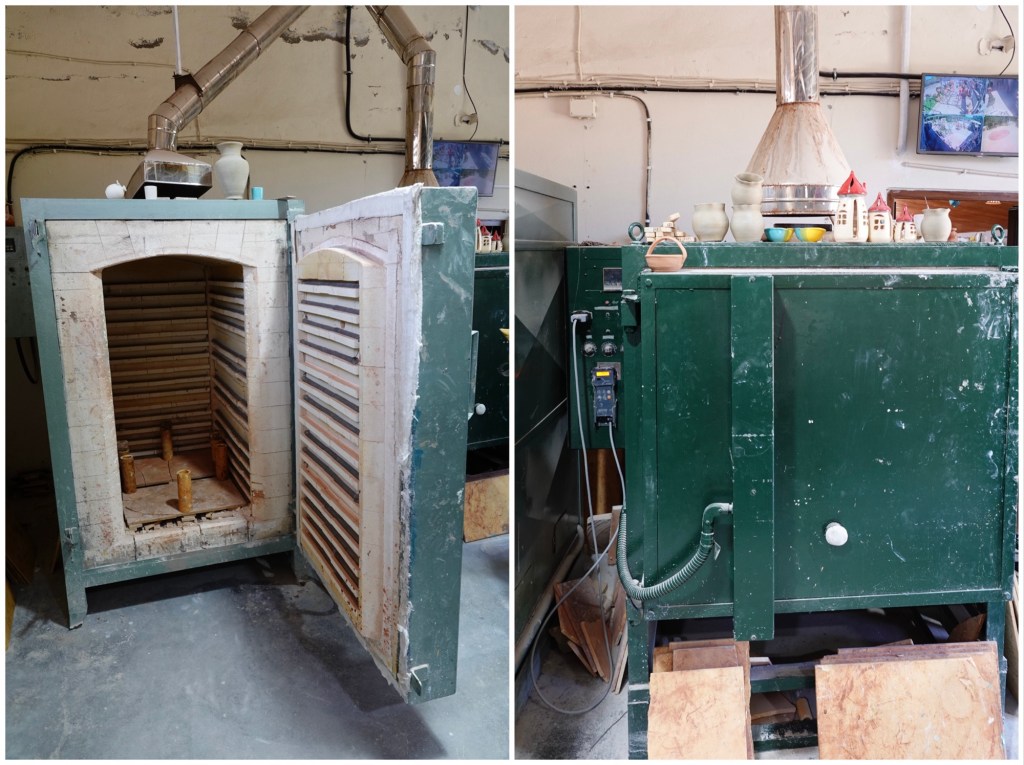 She then took us to her kiln room where she showed us her two modern kilns, one gas-fired and one electric, both of which reach the required maximum 1300°C.